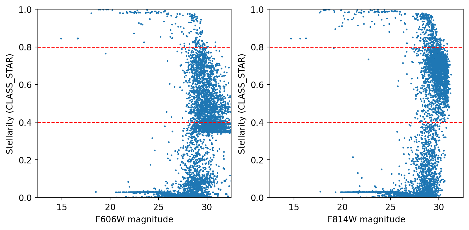 # CLASS_STAR = 0.4 cut can also depend on the image quality, distribution of CLASS_STAR, or your scientific goals!