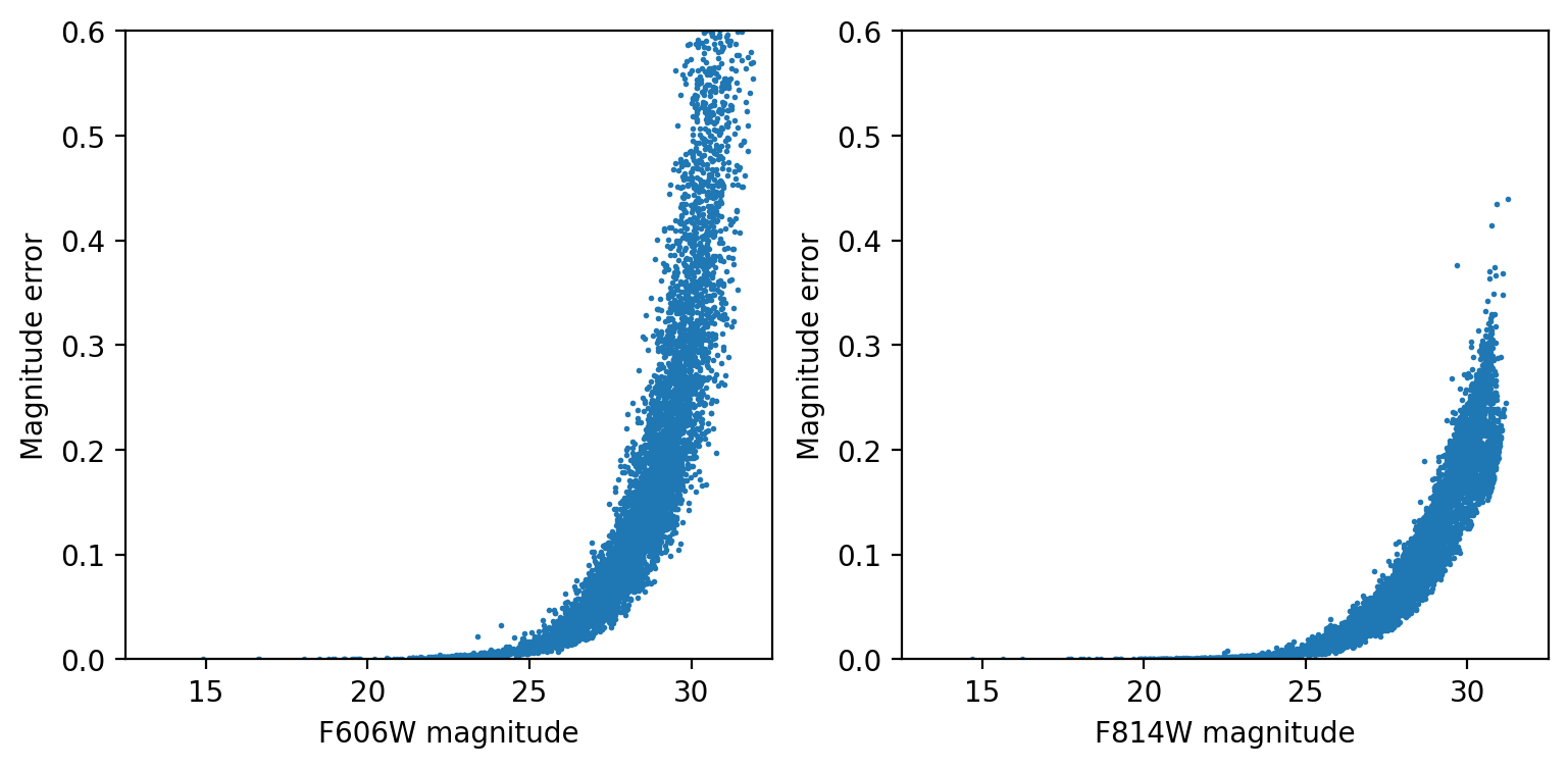xlab = ["F606W magnitude", "F814W magnitude"]